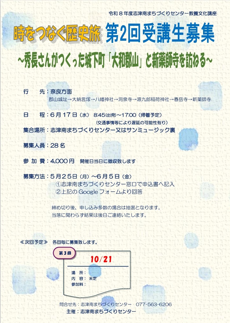 202604.01令和8年度教養文化講座「時をつなぐ歴史旅」第1回受講生募集from.教養文化講座 -
