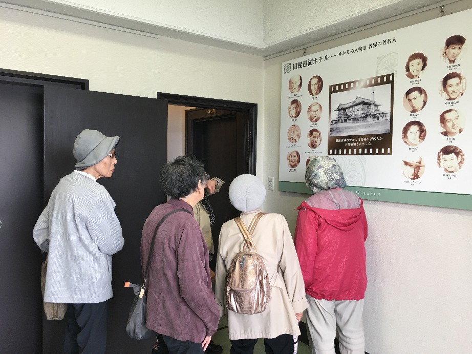 琵琶湖ホテル時代の様子を写したパネルを見たり、映画「国宝」のパネル展を見たり。