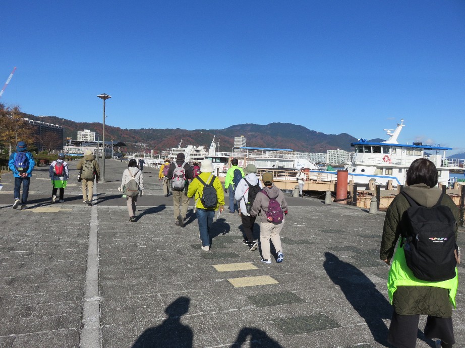 寒い日が続いた週でしたが、開催日当日は雲一つない青空のもと参加者10人、職員4人が南草津駅をスタートしました。