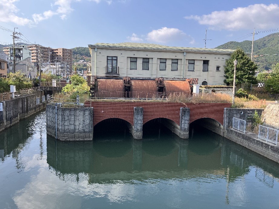 大津港まで行き、琵琶湖疎水の第一疎水取水口へと向かい、いよいよ琵琶湖疎水沿いを歩いていきます。