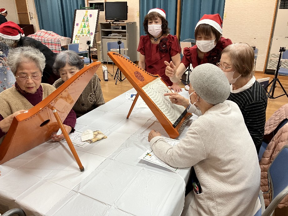 ヘルマンハープの優しい音色で奏でられるクリスマスソングや冬の曲などを学級生みなで楽しみました。