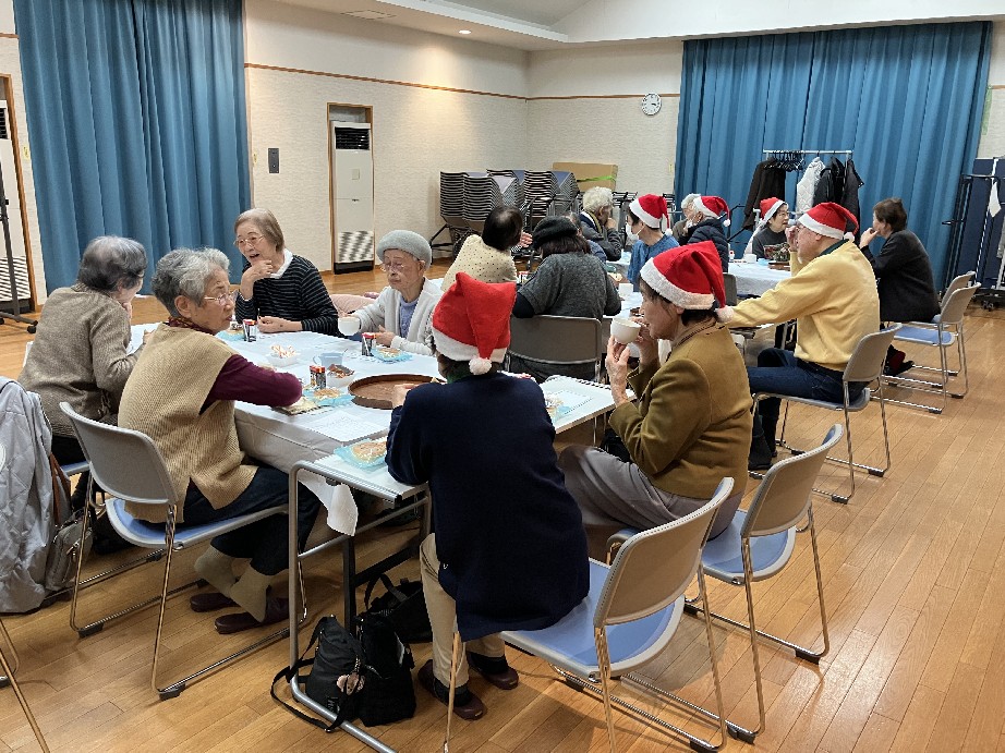 茶話会では運営委員で作ったチョコパイのトナカイなどのスイーツが並べられ、かわいいお菓子とともに話に花が咲いていました。
