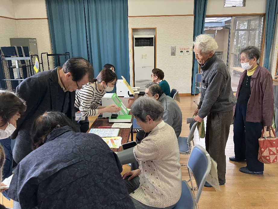 健康寿命のお話を聞いた後は、草津市人とくらしのサポートセンターの職員の方に健康測定をしていただきました。