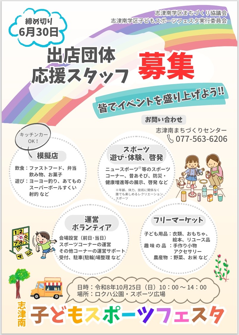今年も10月25日(日)にロクハ公園スポーツ広場にて志津南こどもスポーツフェスタを開催します!