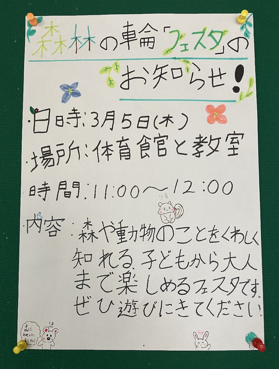 志津南小学校4年生の児童5名が、3月5日に開催する「森林の輪フェスタ」のポスターを届けてくれました。